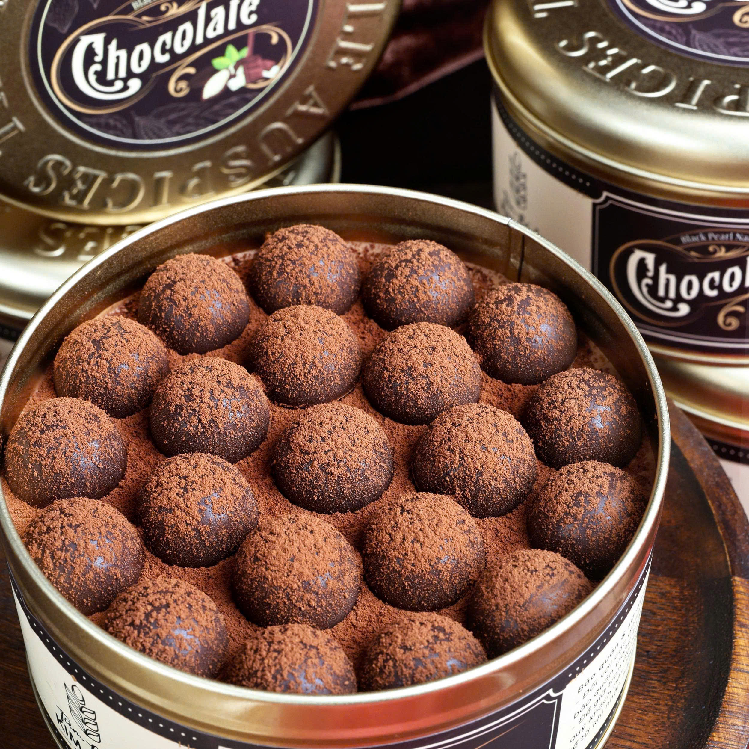 Black Pearl Nama Chocolate: Những viên nama đậm vị, phủ lớp cacao nguyên chất tan chậm, mang đến hương vị sâu và tròn trịa.