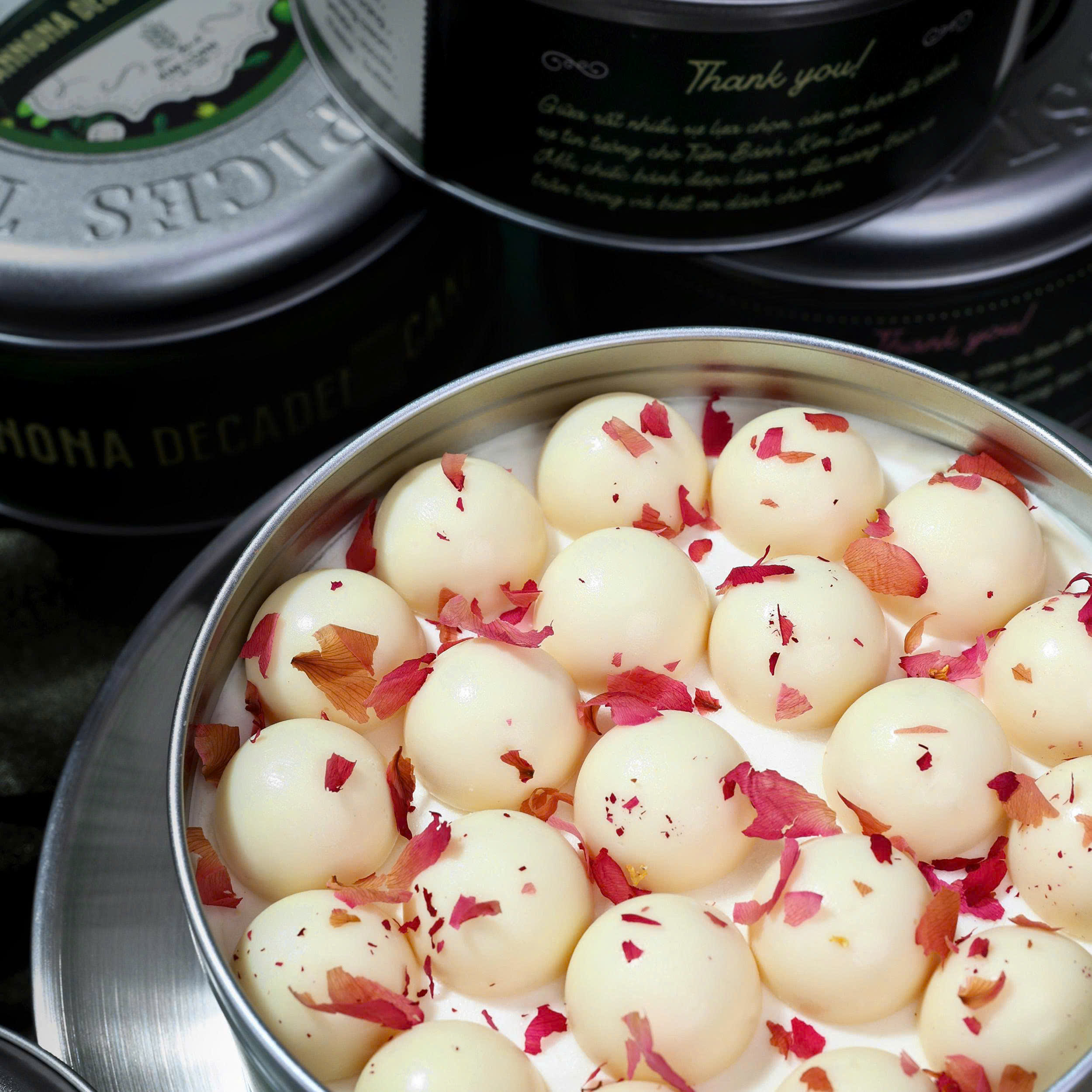 Một chiếc bánh đẹp không chỉ nằm ở hình dáng, mà còn ở cách nó được trình bày. Hộp thiếc mang đến một khung hình hoàn hảo để: