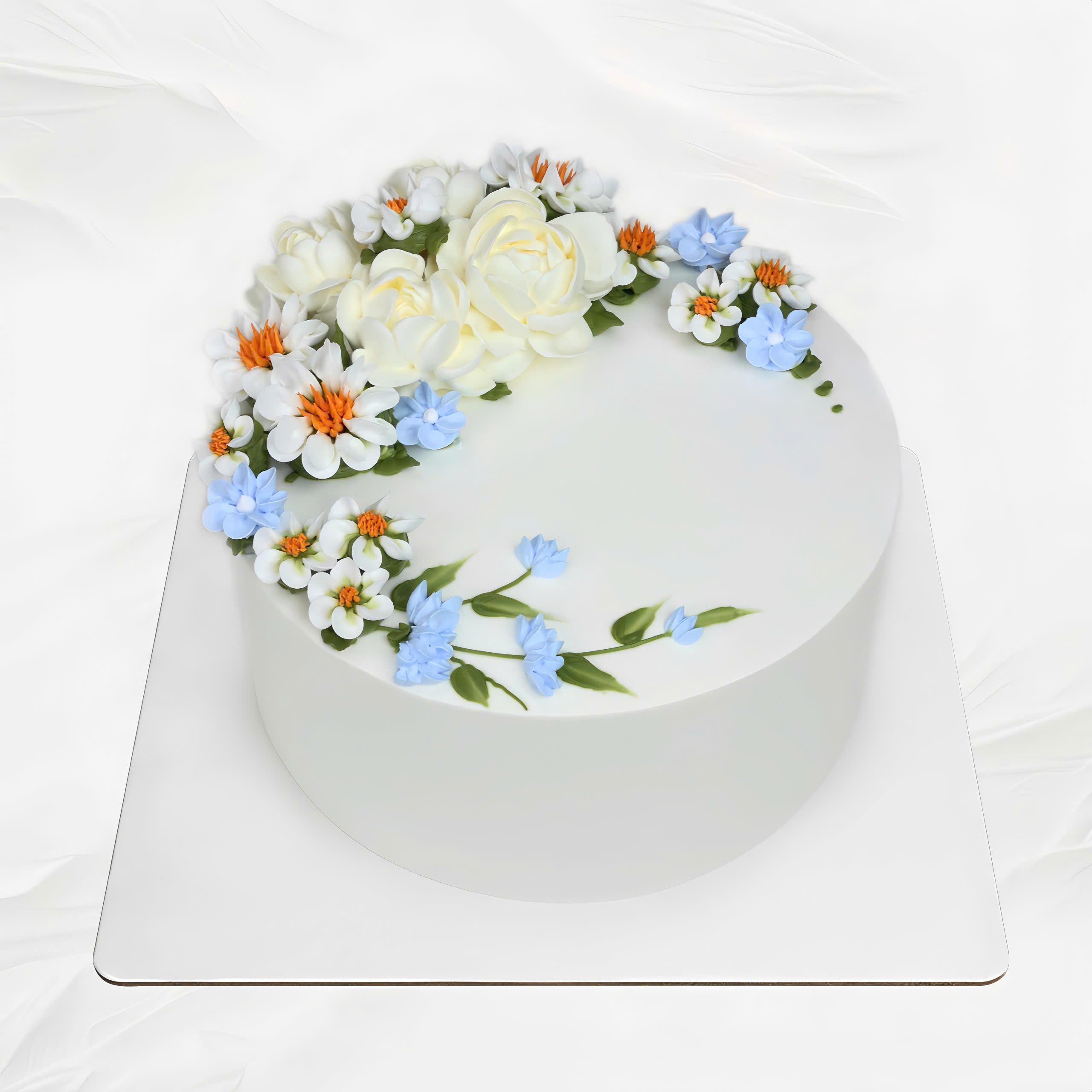 Là mẫu bánh cơ bản, dễ thương, phù hợp với những ai yêu thích sự nhẹ nhàng, tinh tế. Bánh kem hoa đơn giản thường được trang trí với hoa hồng, hoa anh đào, hoa sen, hoa tulip... bằng kem, tạo hình đơn giản nhưng vẫn rất ấn tượng.